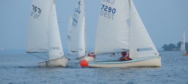 The morning started with promises of moderate winds WSW at 15 km. By start time for all 8 vessels, the rounding of 12 Mile Is. was going to be putting all of their sailing talents and skills to the test as the winds picked up from WSW 25-30 km. The first of the sailboats set out with fair winds and hopes of glory, the Harry Adderley trophies for the taking and hopes of a stop at the Poutine Barge just up river. That’s what lured Leopol out with his mum Corinne in the Tasar. Until of course Corinne, in her eager bid to show Leopol how you sail in big wind, forgot the most important task on hand, PUTTING HER FEET UNDER the hiking straps. Finding herself out of the boat and her son alone in the boat, Corinne’s attempt to not be totally left behind, discovered the hand grabs on the inside of the Tasar cockpit and hung on for dear life while being dragged alongside the sailboat for some distance. Round and round they went. Her desperate pleas to head up wind and un-cleat the Jib went unanswered as Leopol reminded her that he couldn’t with her demands by exclaiming “Mama my hands are much too sore, I can’t do that!.” until finally Corinne found her way flopping onto the sailboat. A short trip was had as they eventually made their way back followed by another capsize pushed by winds of 25-35 kms that drove them to shore and Leopol again exclaiming “I cannot help you Mama, my hands, Too Sore!!” Frank and Jean headed out in the Hobie 16, eager to finally get going, equipped with everything they needed for such a long arduous journey, including a full lunch spread prepared by Jean. Did I hear wine glasses clinking? NWN 30-44 km strong winds and driving waves forced the pair to turn back at the Marina, dashing any hopes of a beautiful lunch on board and trophy in hand. Steve set out in the “Farr 3.7” home built. Attempting to be Farr and away, Steve also made it as Farr as the Marina but decided that hanging off the trapeze wire with the winds now blowing a steady 30-35 kms with gusts and large waves that left him at times dangling and swinging off the wire like a puppet in a circus act wasn’t worth the long journey. The other sailboats passing nearby did comment that he made trapezing look easy despite the winds. He managed to stay upright all the way back and quite enjoyed the ride until the last minute, in front of a waiting crowd on shore, he proceeded to capsize while lifting his rudder. We enjoyed that for sure!. Devin rang the shore crew from an area still unknown further up river saying his large sail on his windsurfer type sailboat was too much for the conditions and decided to quit while he was ahead and turned around but not before informing us of Tom’s cruising in the Laser near the Quebec shore. Several capsizes later, we were informed by a nice guy on a SeaDoo that Tom needed rescuing. He was found doing his Blue Heron impersonation, wading along the sandy shore line in the marshes looking for fish and any way out of not having to sail the Laser back. Cold and tired he was greeted with smiles by the rescue boat of Frank and Steve where he happily traded seats with Steve who sailed the Laser back. Glad you were OK Tom. Heidi, Zsombor and Csanad, sporting scant but fashionable swimsuits and life jackets, set out for their fun in the sun adventure in the Albacore. Armed with nothing but a jug of water and several granola bars, they reached the welcomed shores of Port of Call Marina. Half Frozen and in need of Poutine refuelling, they were found doing the lizard thing, baking on the rocks for 2 hours to absorb enough radiant heat to sustain them for the remainder of their trip around the Island. Returning in just over 7 hours and 5 mins, the crew likely set an all time record of the longest rounding. The rescue squad, AKA Frank, Jean and Steve were kept waiting for their safe return. Frank, who was ready to leave hours beforehand, resorted to being a permanent fixture on his recliner beach chair yet again. Ken S. set out to have a leisurely fun sail in his laser but decided after the strong winds carried him practically to 12 Mile Island that he might as well just join the pursuit and continue in the hunt for that prized 1st place finish. Carla, the PRO, was convinced he had headed in the opposite direction and had likely gone to a pub somewhere to celebrate the nearing of the end of training season, when he failed to return after 2 and a half hours. After several death rolls and practice capsizes, Ken appeared unscathed to capture 2nd place. That left the 8th vessel , the other Hobie 16, carrying Newlyweds Robert and Bianca, fighting for top spot on the leader board. Nearing the Island, the couple went searching for a secluded romantic spot to stay but left empty handed. Armed with a competitive spirit, the newlyweds decided to head back to the KSC on a blistering fun, fast surf in a mere 2h 29 mins to capture 1st place. Congrats!