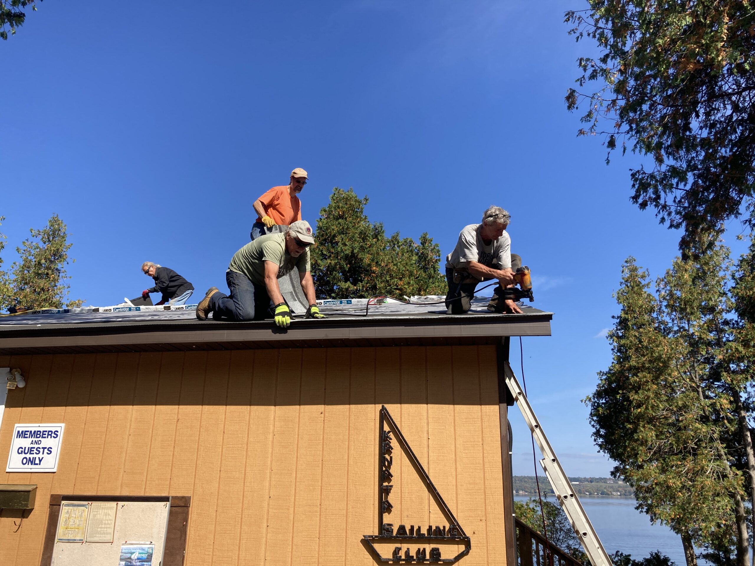 Members nailing new shingles